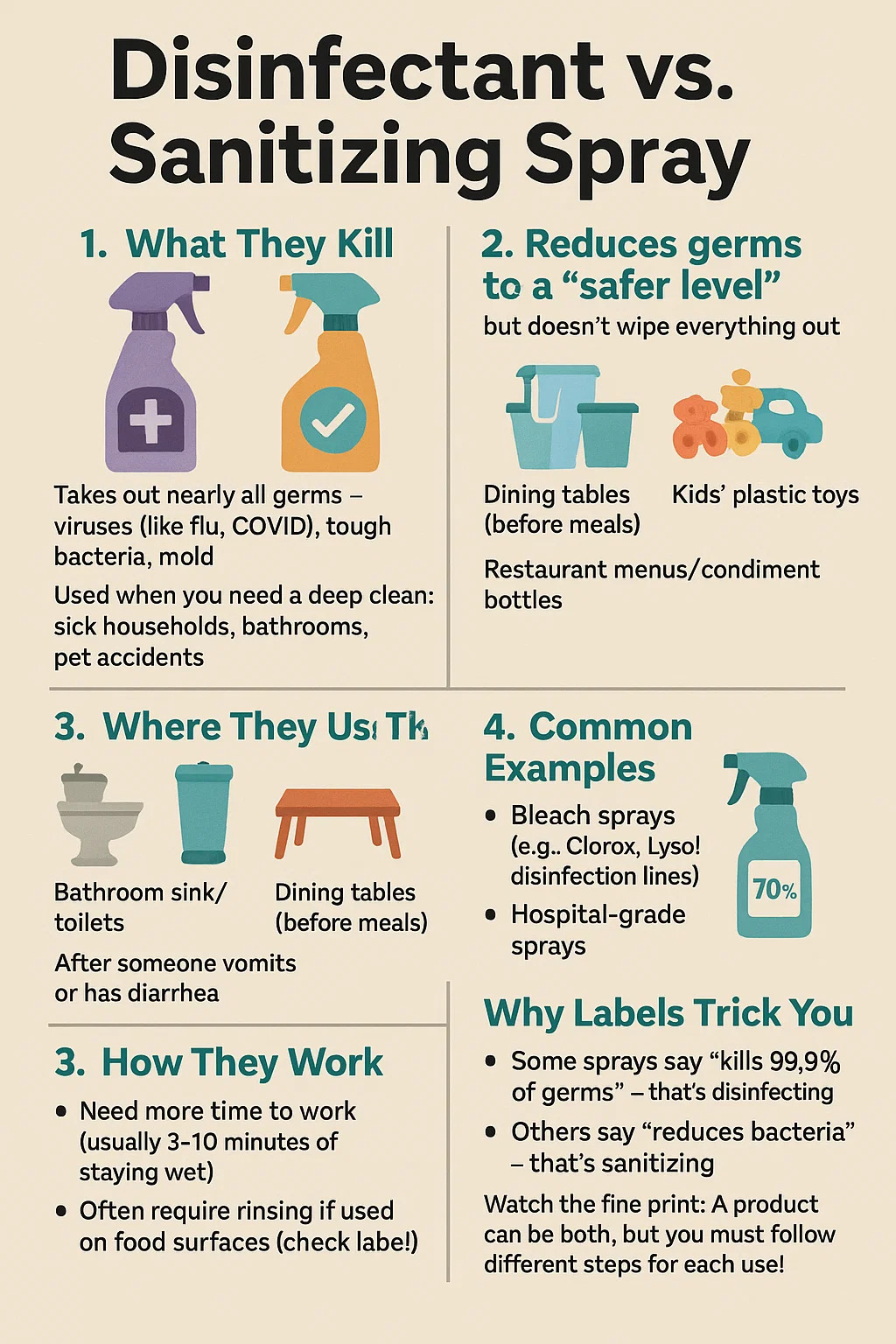 Вот реальная разница между дезинфицирующие спреи и дезинфицирующие спреи: